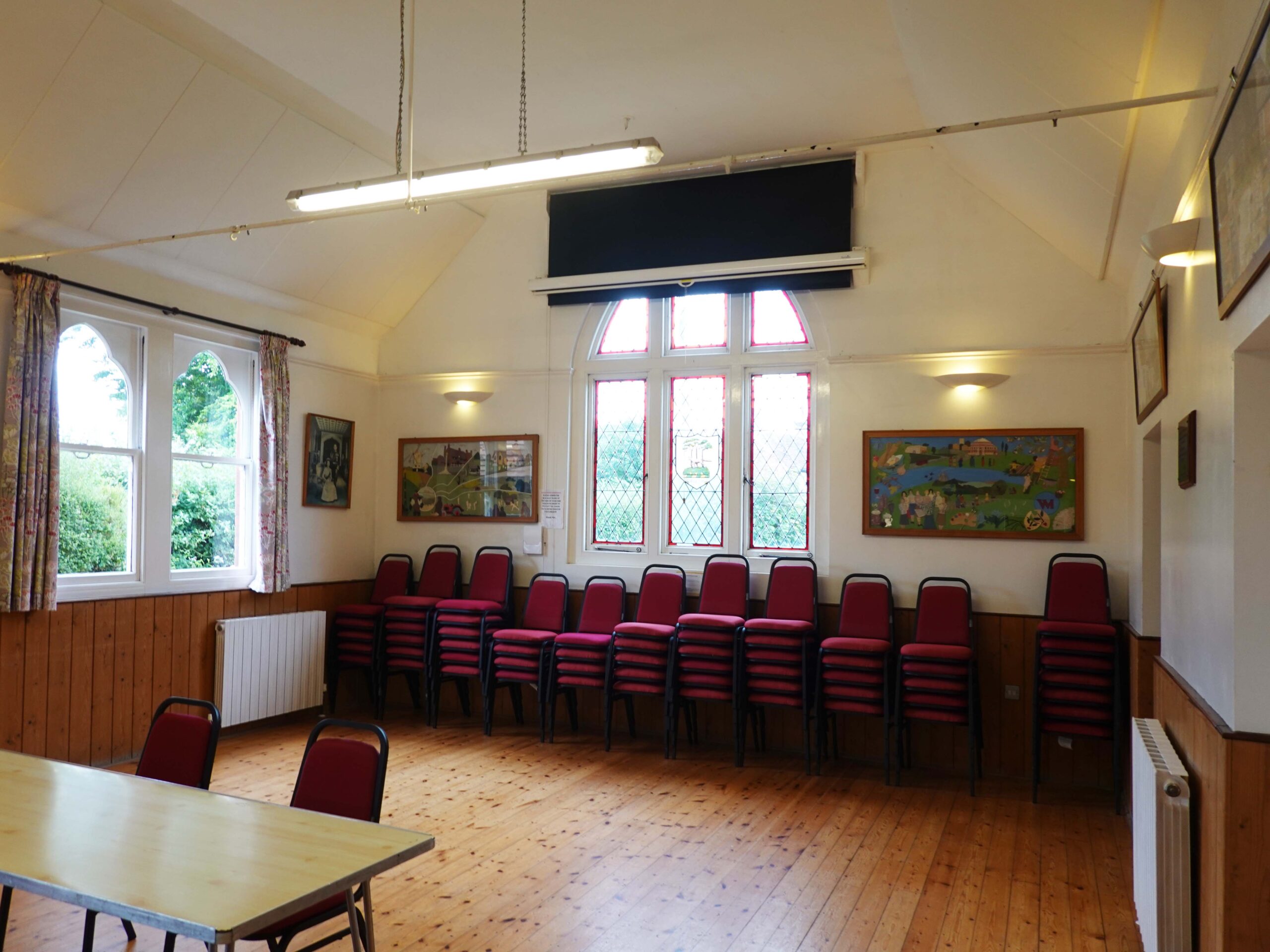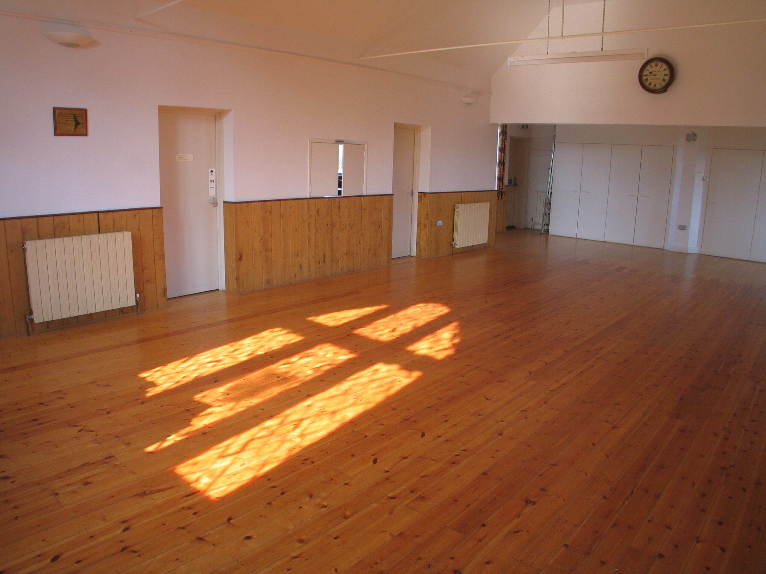 - Size 40 x 18ft (12 x 5.5 m), with a good varnished pine floor suitable for dancing, etc.